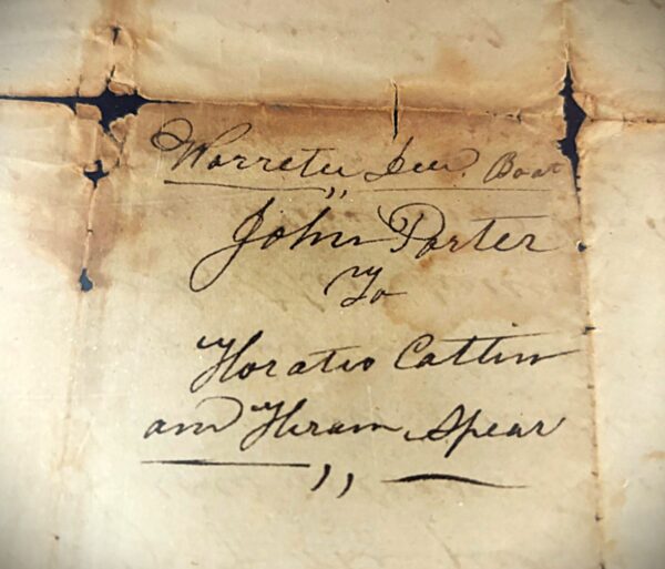 Signatures of John Porter (buyer) and Horatio Catlin and Hiram Spear (sellers) for sale of the canal boat, the “Patriot of Ticonderoga”