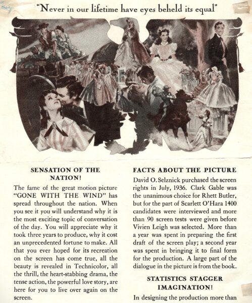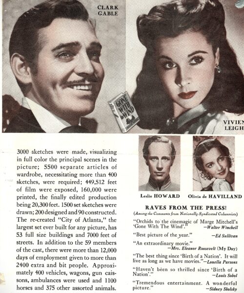 From our collection, we have a four-page advertisement that was handed out to the audience, complete with handwritten comments. Notably the film took two months to reach Ticonderoga after its general release in the United States on January 17, 1940.